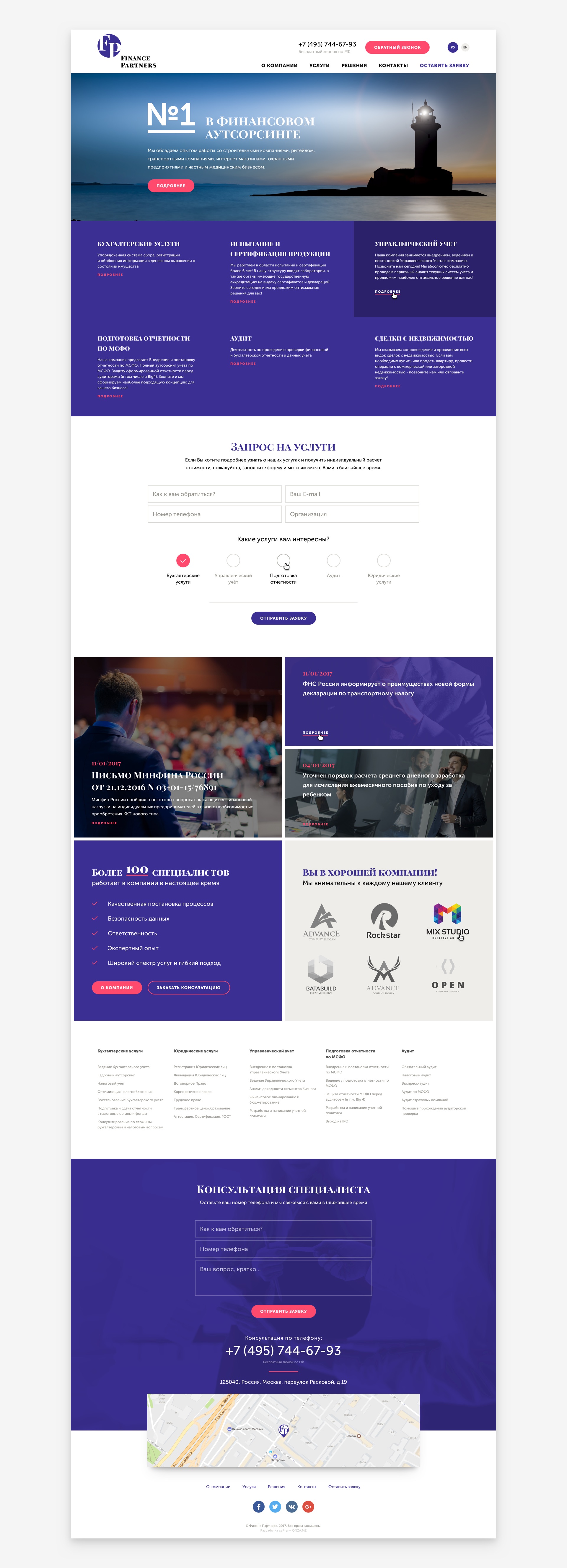 Совместно с ONZA.ME разработали сайт для компании Финанс Партнерс, которая предоставляет юридические, бухгалтерские, аудиторские услуги и комлексные решения по оптимизации бизнес-процессов для строительных и транспортных компаний, ритейла, итернет-магазинам, охранным предприятиям и частным медицинским организациям.